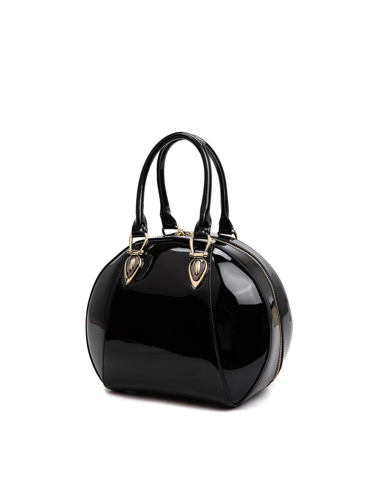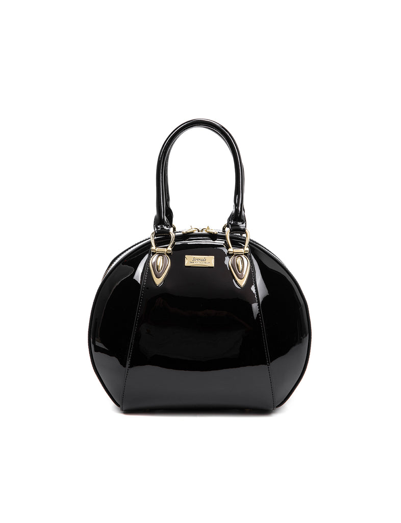 ALLURA ROUNDED MINI PATENT LEATHER HANDBAG-SV1-0293-BLK