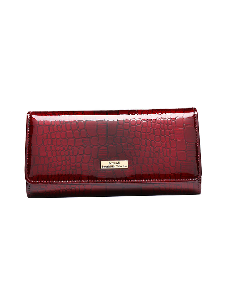 This Serenade Beverly Hills Collection Cherry Croc Patent Leather wallet has plenty of room for all your cards and essentials. Large enough to fit 20 cards plus 2 window identification slots.