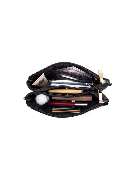 HOPE MULTI COMPARTMENT LEATHER XBODY BAG- E1-1010-BLK- NEW IN