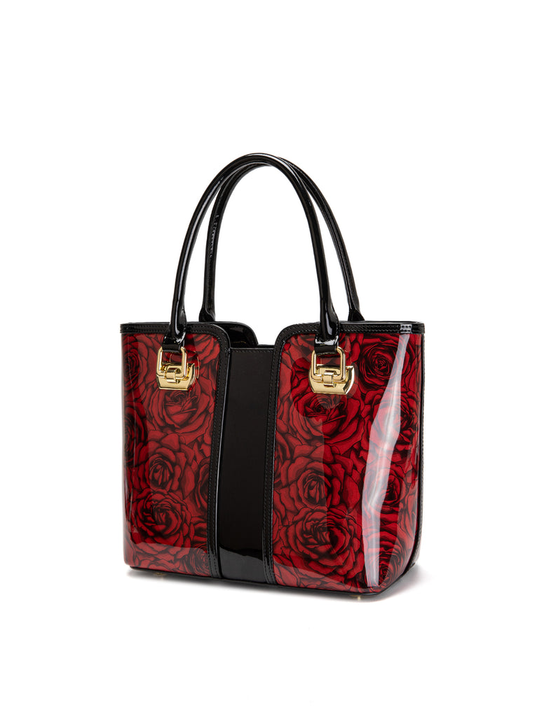 ROSE BUDS MED GRIP HANDLE LEATHER BAG-SF38-0292- NEW IN