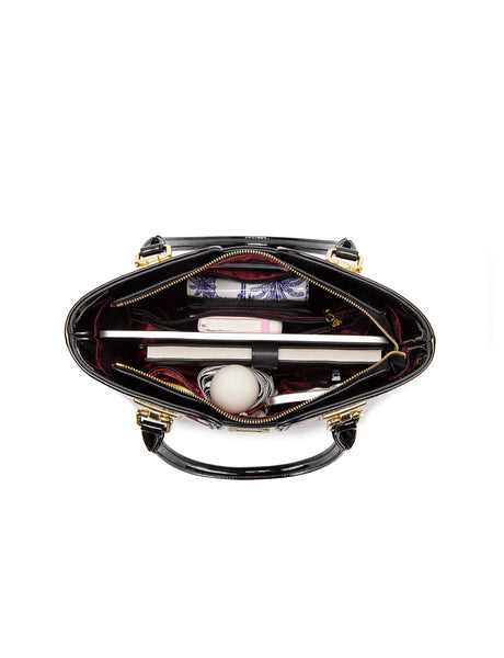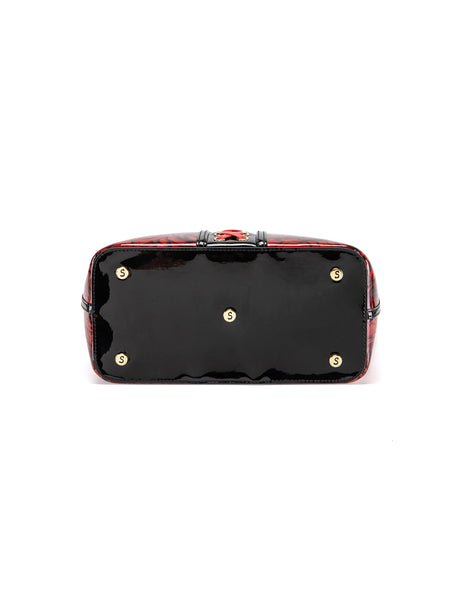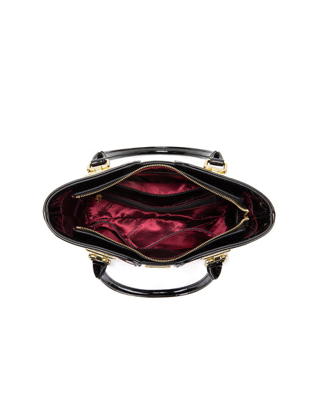 You should not immediately hold patent leather handles after applying hand cream because the oils and chemicals in the cream can stain, cause discoloration, or damage the patent finish by penetrating the coating. It is essential to wait until the hand cream has completely dried to avoid leaving permanent marks or causing the finish to become sticky or dull. Damage to the coating can occur over time: For patent leather, grease and oils can penetrate the top coating and mix with the leather underneath, creating blotches and bubbling/peeling. Excess hand cream should always be removed/your hands completely dry before handling your bag or wallet.