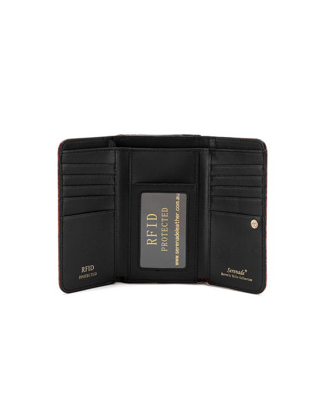 This Serenade Beverly Hills Collection Rose Buds Medium Leather wallet has plenty of room for all your cards and essentials. Large enough to fit 20 cards plus 2 window identification slots.