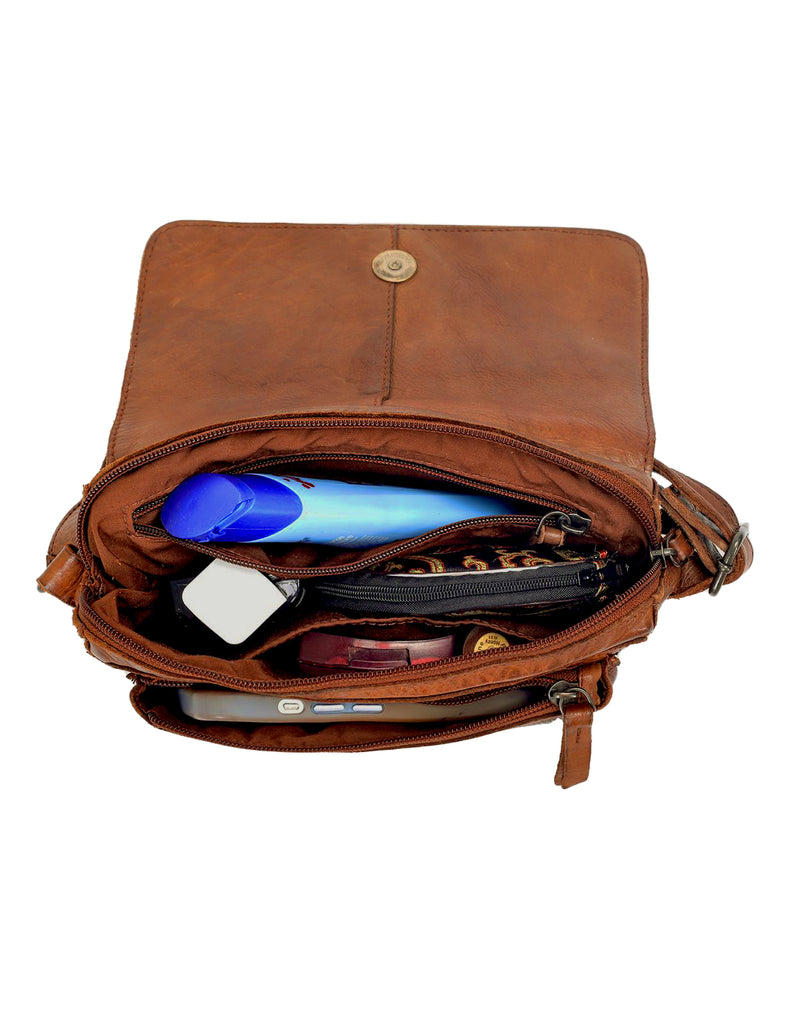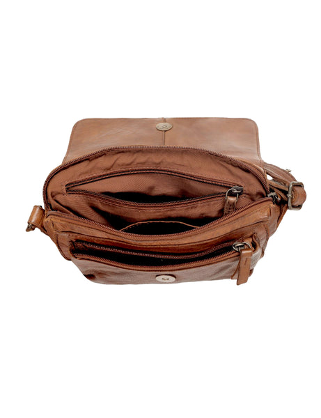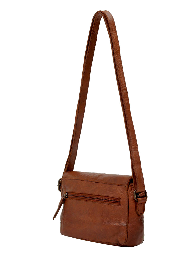 ESPERANCE SML FLAPOVER LEATHER XBODY BAG-A-0004-COGNAC- NEW IN