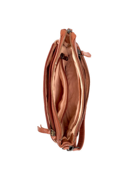 LOXTON MULTICOMPARTMENT LEATHER XBODY BAG- A-0017-TAN- NEW IN
