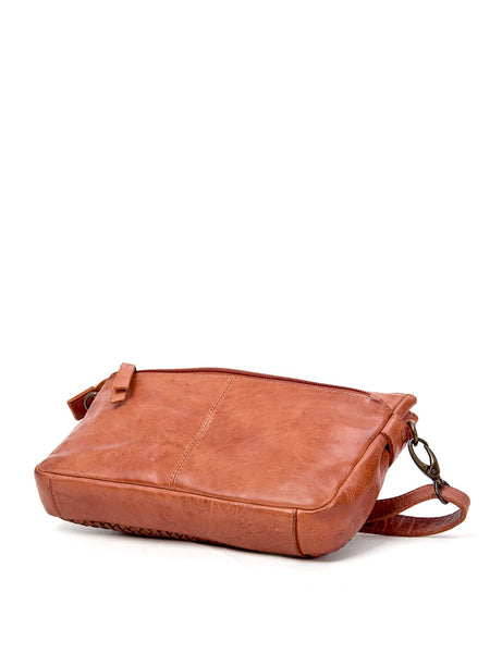 RENMARK WOVEN DETAIL LEATHER XBODY BAG- A-0018-TAN- NEW IN