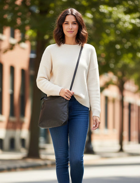 TENTERFIELD LGE LEATHER XBODY BAG- A-0007-BLACK- NEW IN