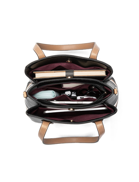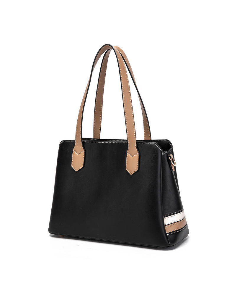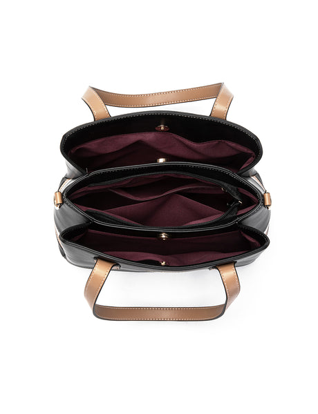 CARLY TONAL VEGAN TRIPLE COMPARTMENT BAG- XB-2378-BLK- NEW IN