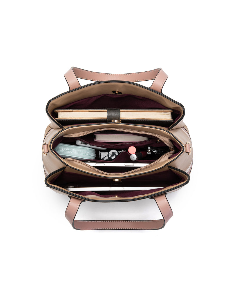 CARLY TONAL VEGAN TRIPLE COMPARTMENT BAG- XB-2378-CAM- NEW IN
