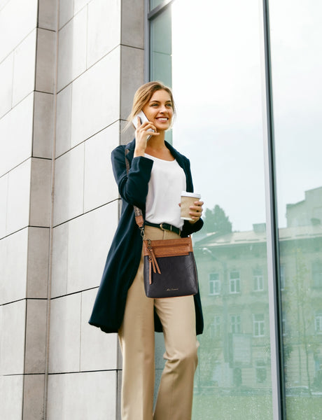 ANDI VEGAN XBODY BAG- XB-2376-BLK/TAN- NEW IN