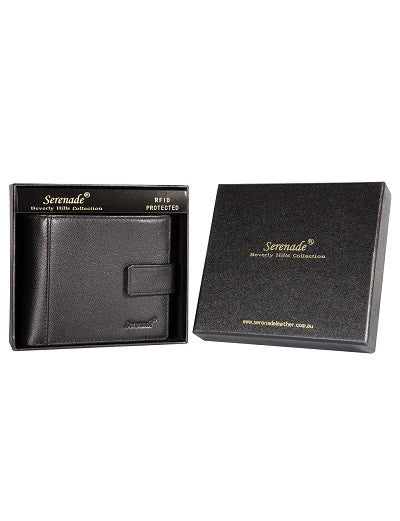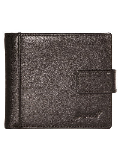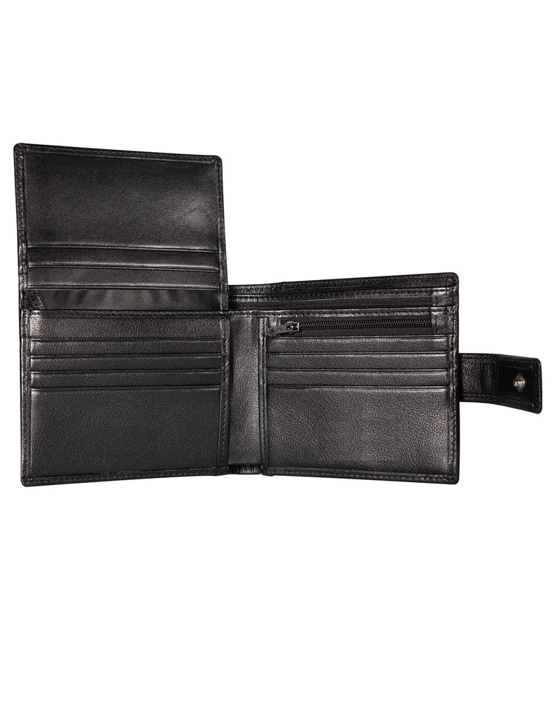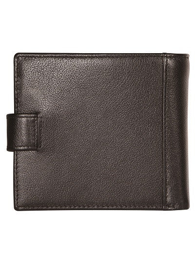 CAESAR MEN'S LEATHER BILLFOLD WALLET WITH TAB CLOSURE AND RFID- GRAIN FINISH (BLACK)