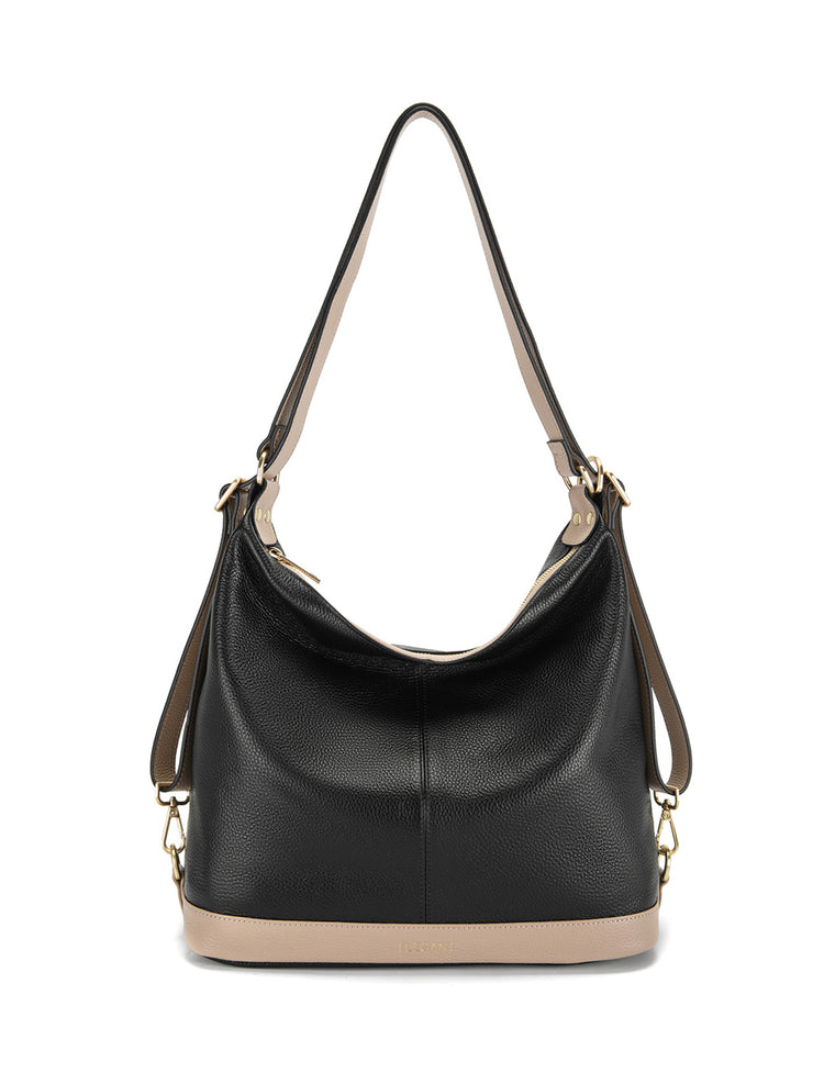 KAMILA LEATHER CONVERTIBLE BACKPACK-E1-0823-BLACK/PUTTY