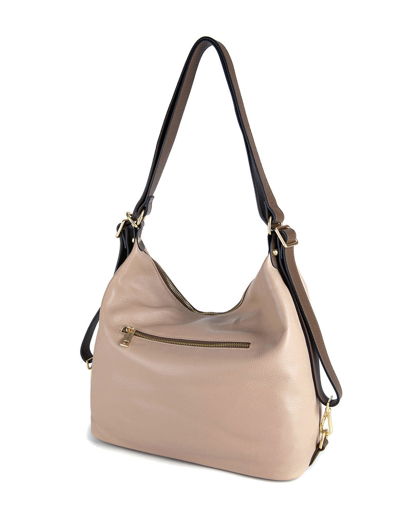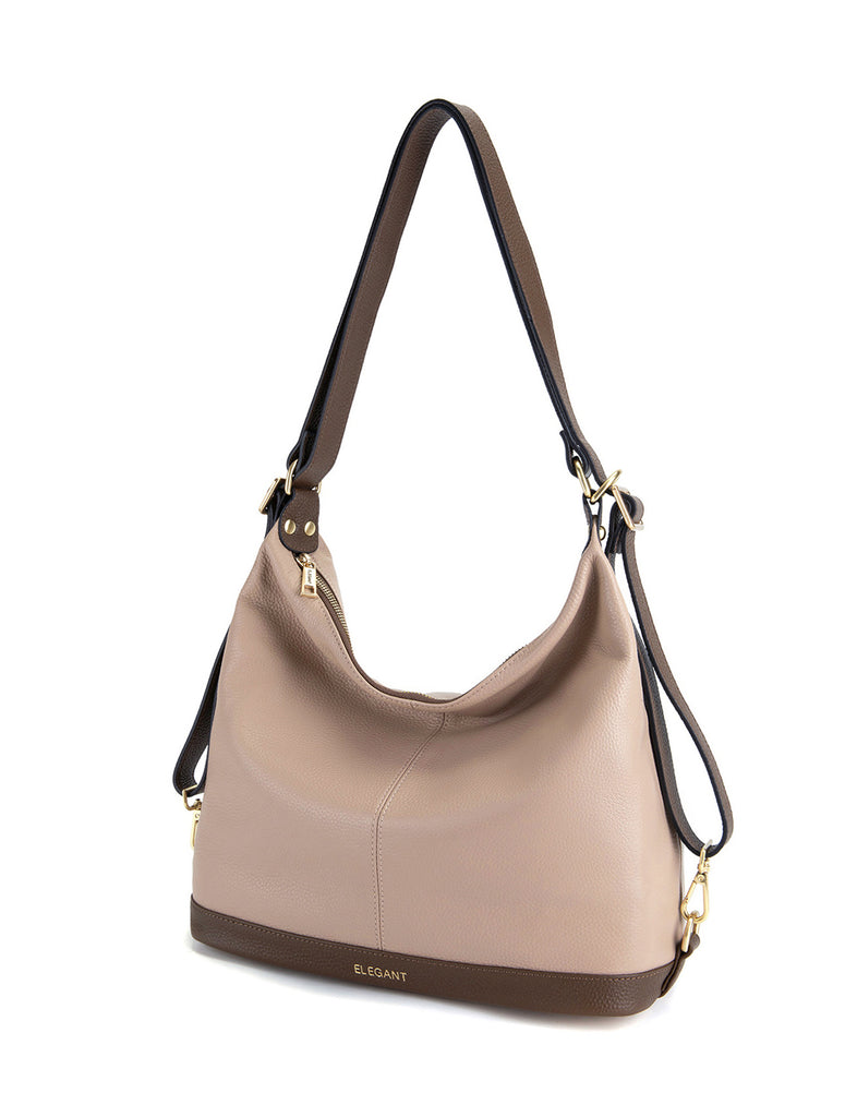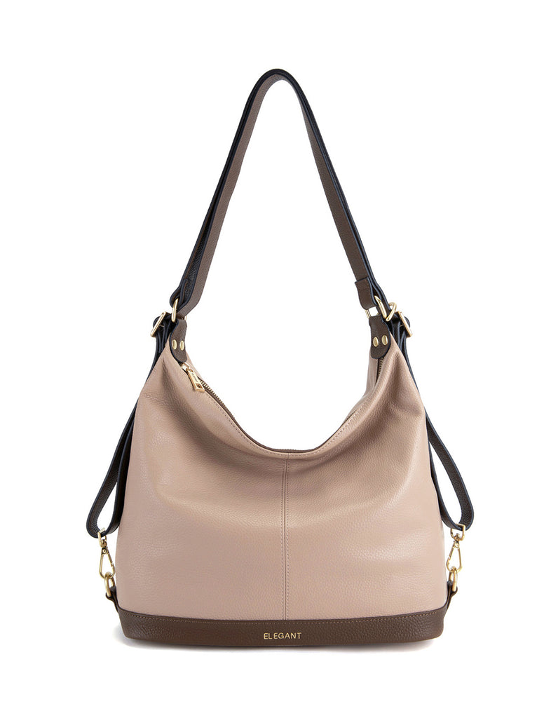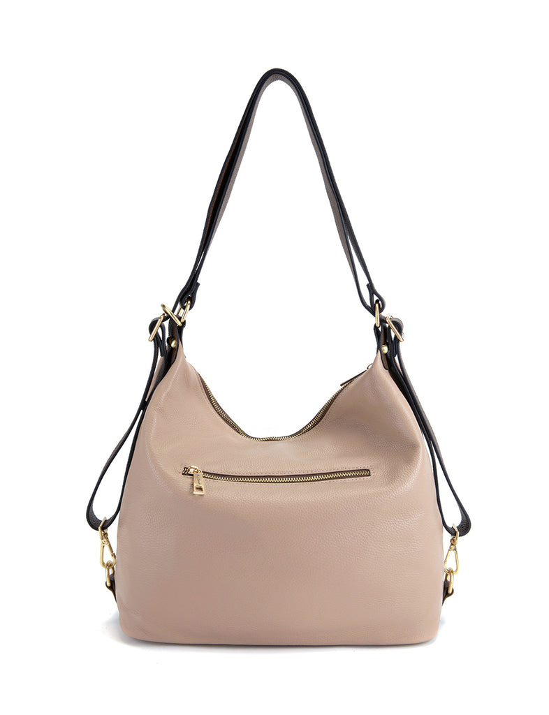 KAMILA LEATHER CONVERTIBLE BACKPACK-E1-0823-PUTTY/CINNAMON