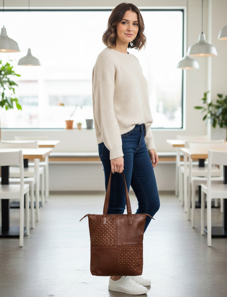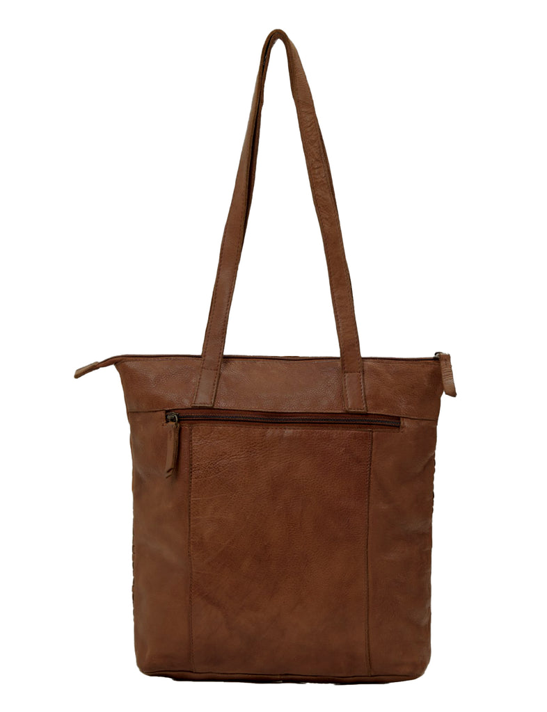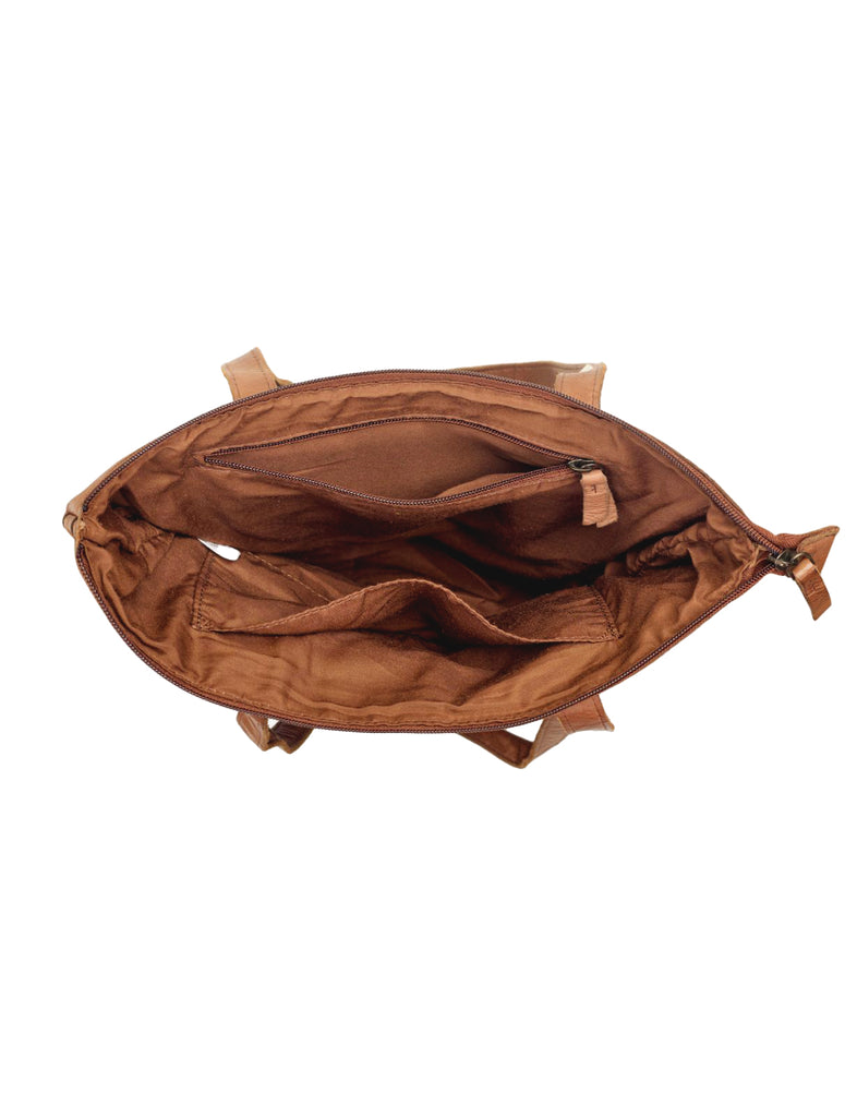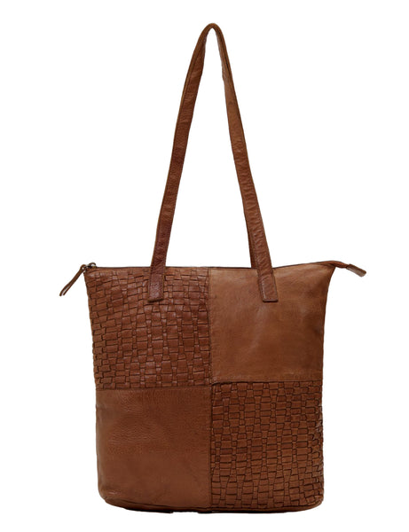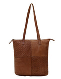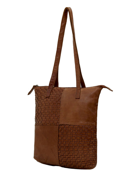 LONGREACH PANELLED LEATHER TOTE BAG- A-0002-COGNAC- NEW IN